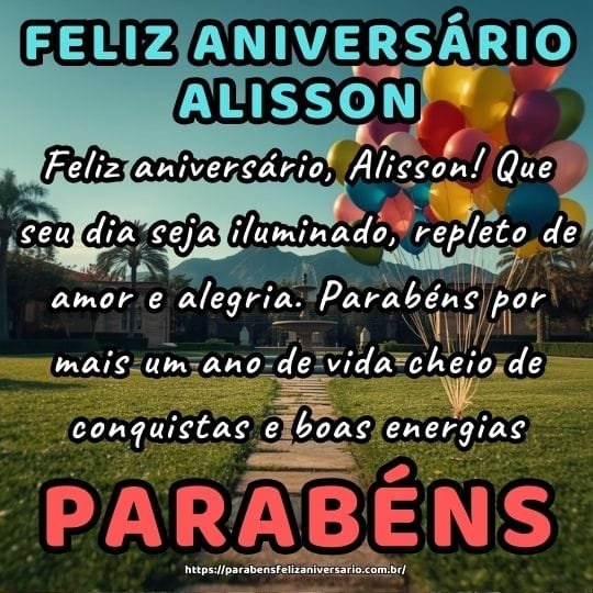 Encontre aqui lindas mensagens de feliz aniversário Alisson e compartilhe desejando parabéns com muitas felicidades e alegrias. Mensagens de Feliz aniversário Alisson Parabéns, Alisson! Que cada sonho se realize e que sua vida seja sempre abençoada. Feliz aniversário cheio de […]