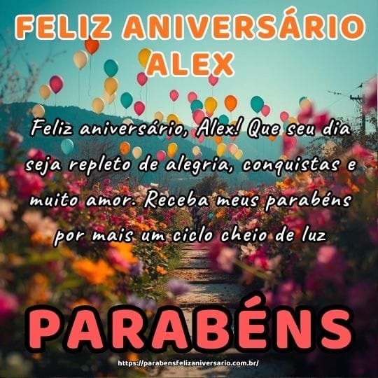 Parabéns, Alex! Desejo-lhe saúde, amor e prosperidade sempre. Que este dia seja inesquecível. Feliz aniversário cheio de alegria.