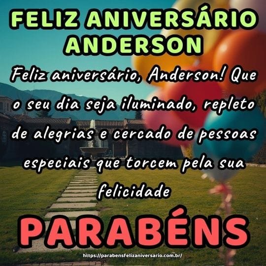 Anderson, parabéns pelo seu aniversário! Desejo que você conquiste todos os seus objetivos e viva cada dia com gratidão.