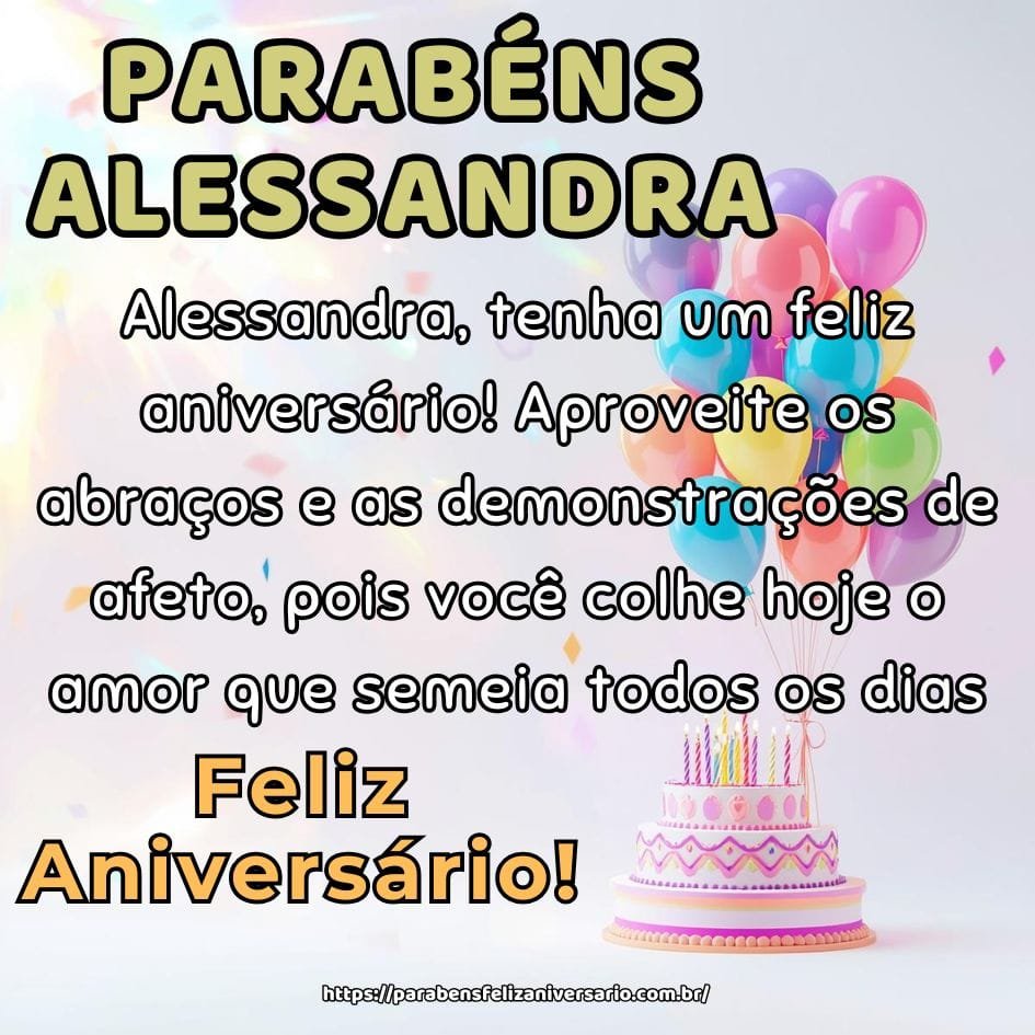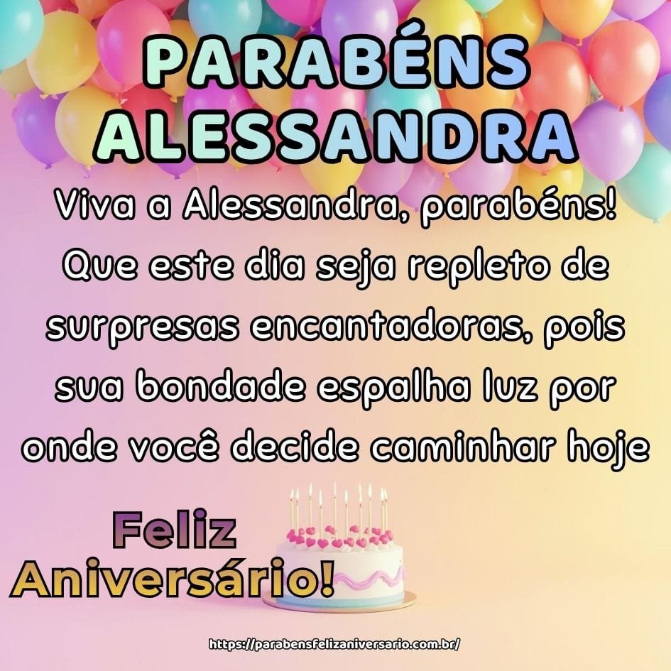 Parabéns e muitas alegrias, Alessandra! Aproveite sua festa com gratidão no coração, pois o universo celebra o nascimento de uma mulher muito especial.
